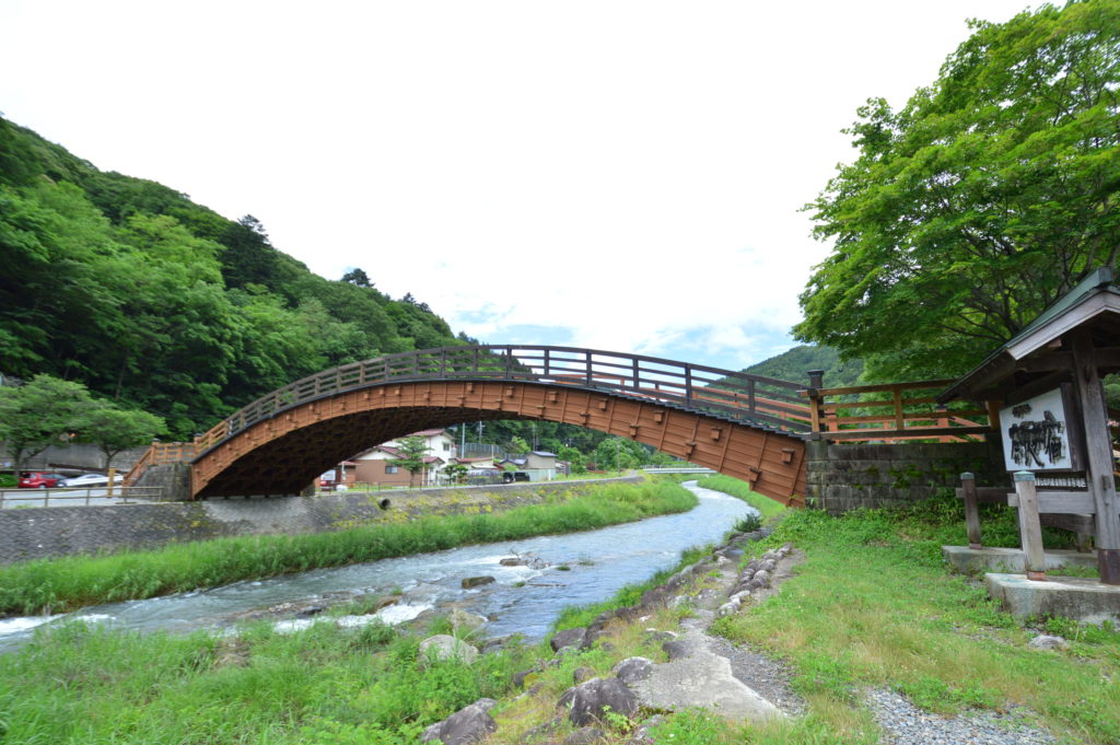奈良井宿 美しい総桧造りの太鼓橋は橋脚を持たない橋としては日本有数の大きさ