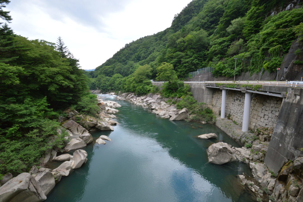 木曽の桟 木曽川沿いには通行困難な断崖がいくつかあった。そのため断崖に差し込んだ丸太の上に板などをあてて通り道とした