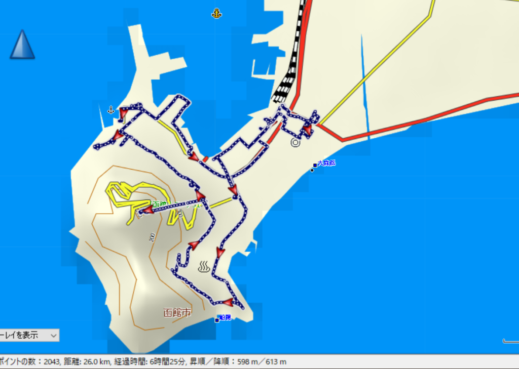 今日の軌跡 函館は北海道の起点のため今回で5回目