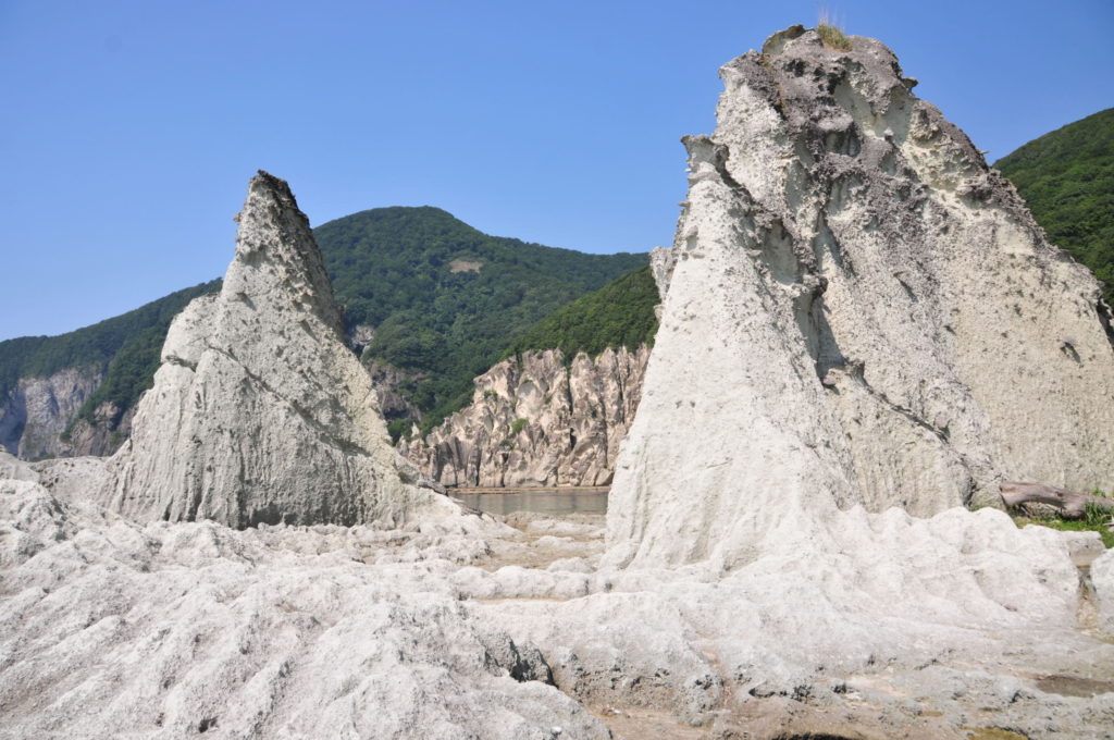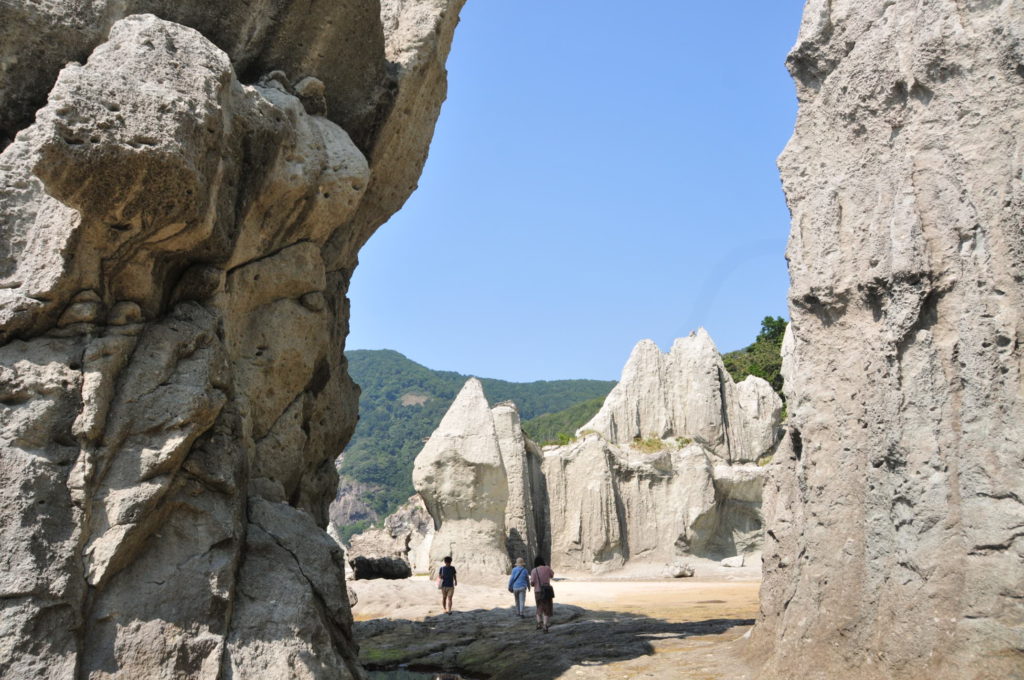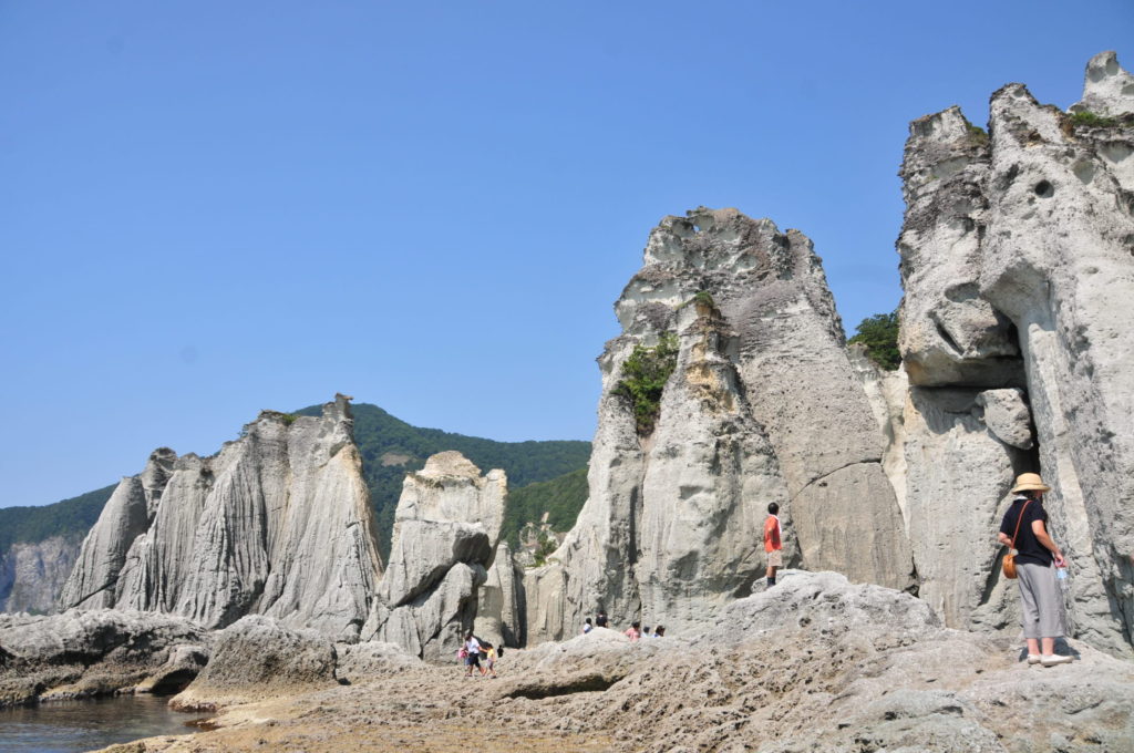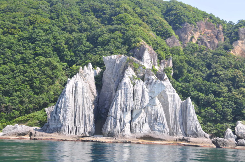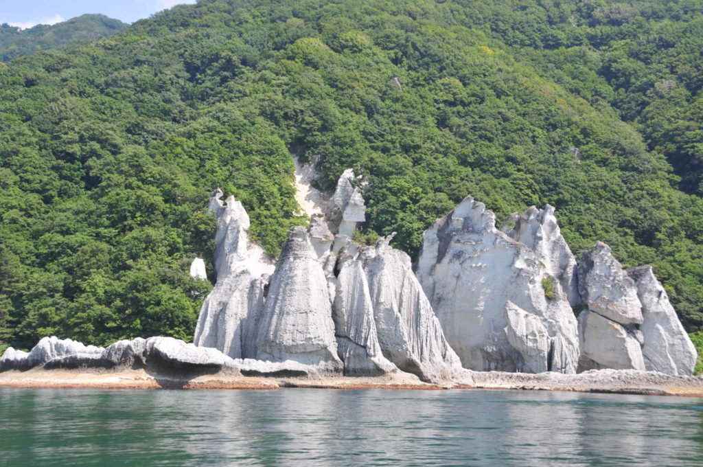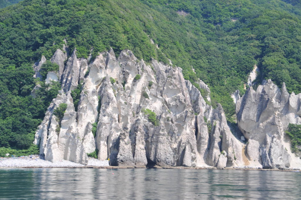 海峡途中でGPSが反応したくなり軌跡が取れなくなった また走行距離も分からなくなった 大間到着ご宿に荷物を預け観光船が出てる佐井港に向かう 仏ヶ浦は極楽浄土を思わせる神秘的な世界とうたってる 岩々には仏にちなんだ名前がついてる 五百羅漢