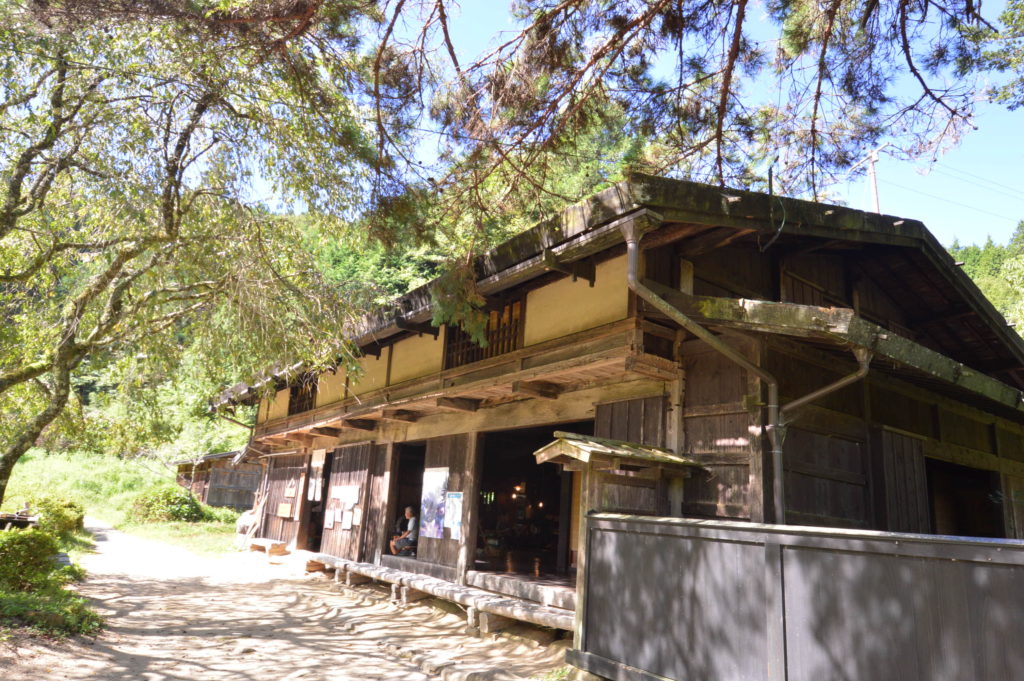 一石栃立場茶屋 立場とは宿と宿の間にある休憩所 ここでお茶を一服 建物は梁が立派 囲炉裏もある 今日は暑いので火をつけてない