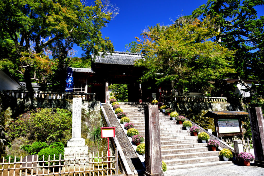 修善寺 階段両側の菊が 菊祭りの菊
