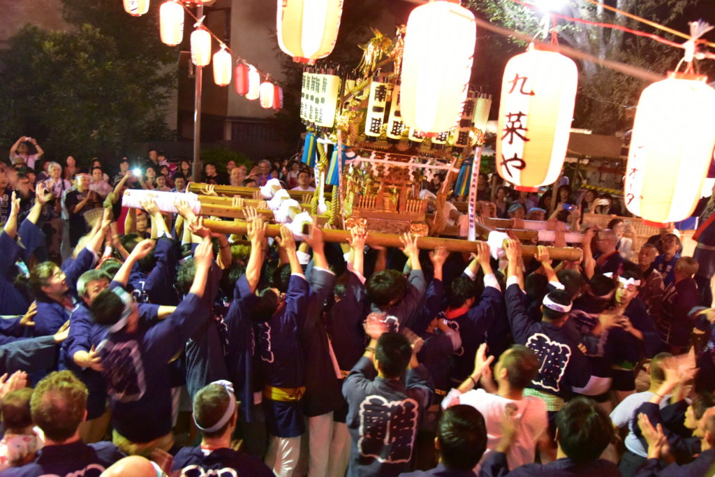 昨年は宮神輿が台風の影響で中止になり今年は氏子が燃えてる
