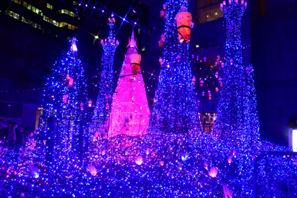 2019年は、ディズニー映画『アラジン』の世界観をイメージしたイルミネーションを展開。アラビアンカラーに彩られた光の中にあの“魔法のランプ”が登場するなど、幻想的なムードを盛り上げる。15分ごとに上演する「ホール・ニュー・ワールド」などの人気楽曲と煌めく光のイルミネーションショー