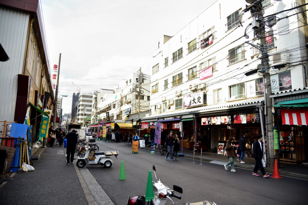 場外のお店は大体14時頃にはお店を閉める 飲食店は自由? メイン通路はこの通り 観光客が少ない 食べ歩き禁止