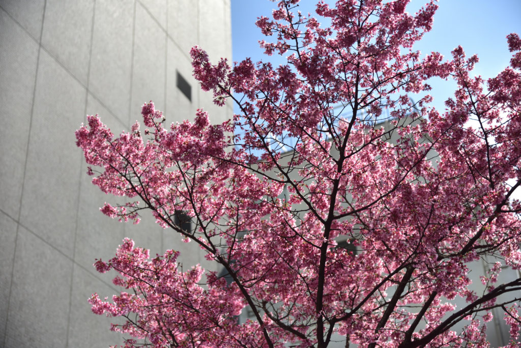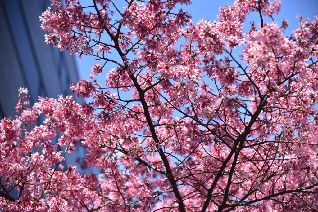 今日は青空 ピンクの桜が映える