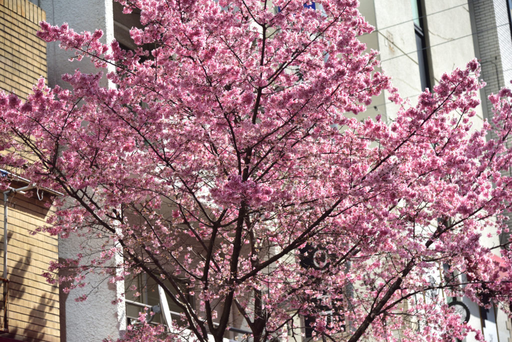 カメザクラは淡い紅色をした早咲きの桜。1947(昭和22)年にカンヒザクラとマメザクラ(富士桜)をイギリスで交配して作ったものが逆輸入された 余り高くならないので街路樹に使われるらしい
