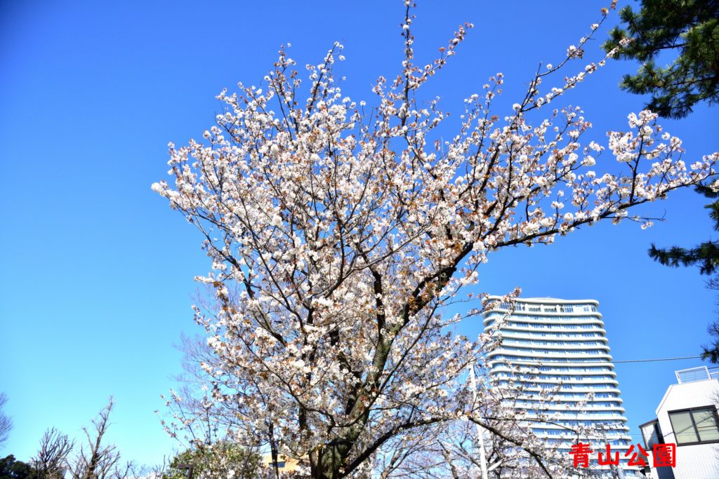 南青山一丁目にある青山公園 ここはNTTが再開発を予定してるが住民の反対があり解決には20-30年かかるのでは 住民にとっては都心にある空間がありがたい 桜もソメイヨシノ 八重の関山 近場での花見が最高です