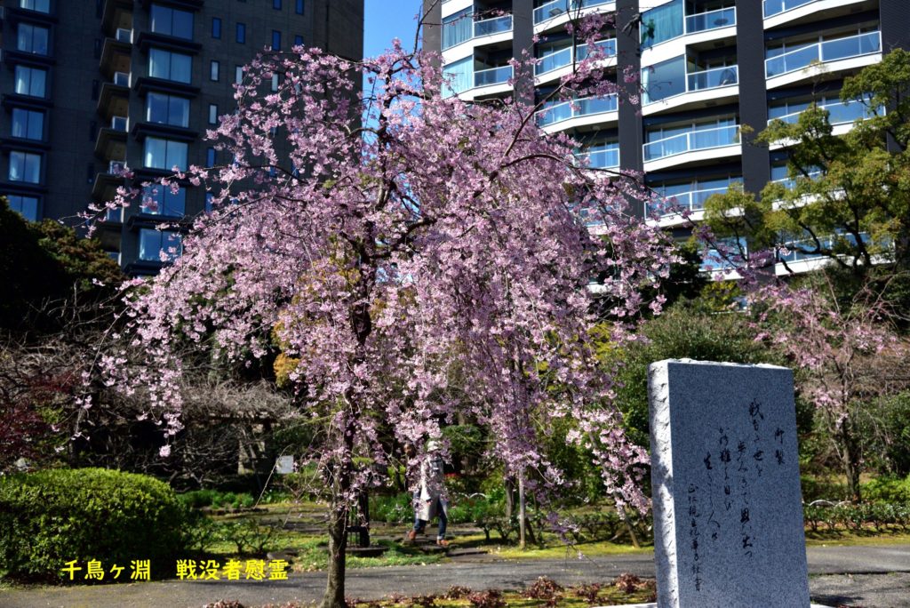 千鳥ヶ淵にある戦没者慰霊所に咲いてる枝垂れ桜