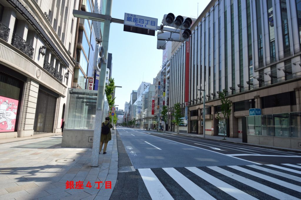 銀座4丁目 ホコ天中止 休日 自粛要請 車も人もこの通り 10時頃