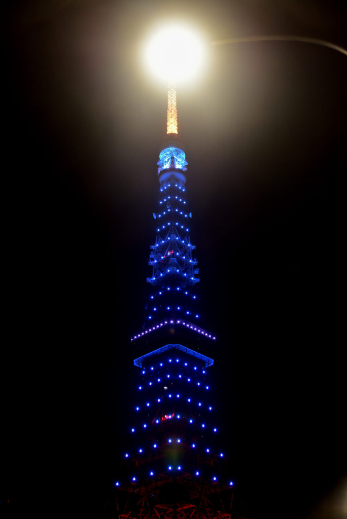 芝 増上寺公園から 街灯が真上に来る場所で撮影