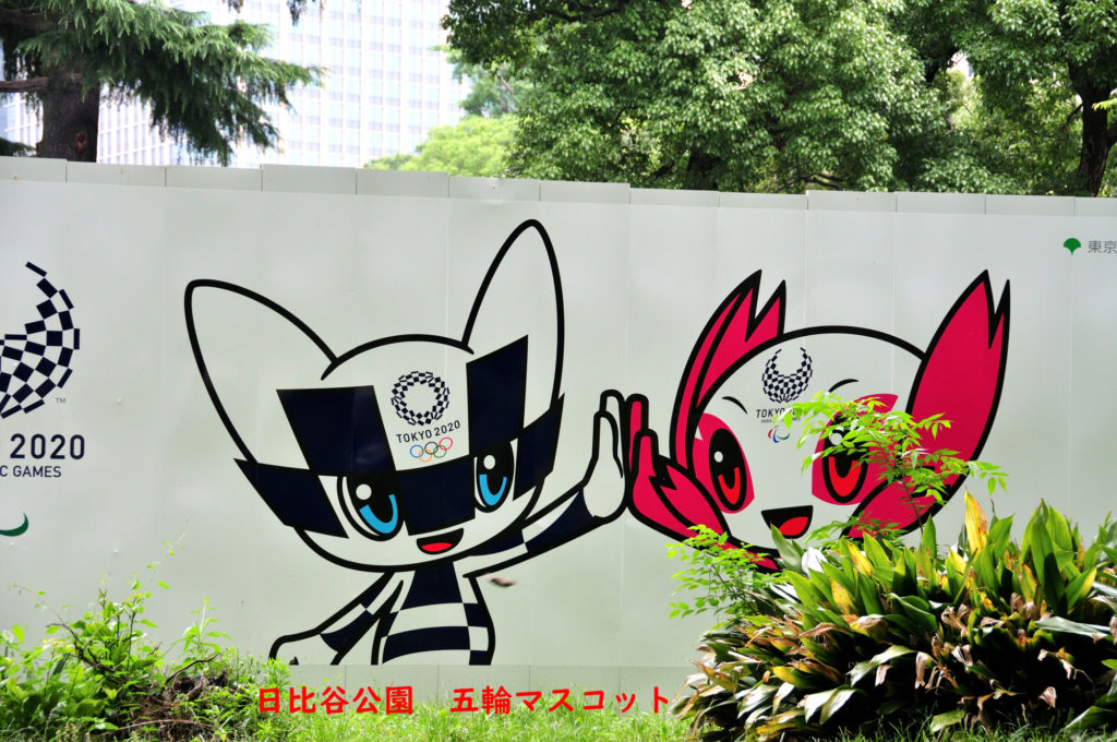 1年延期になった東京五輪 マスコット 日比谷公園工事用囲いに