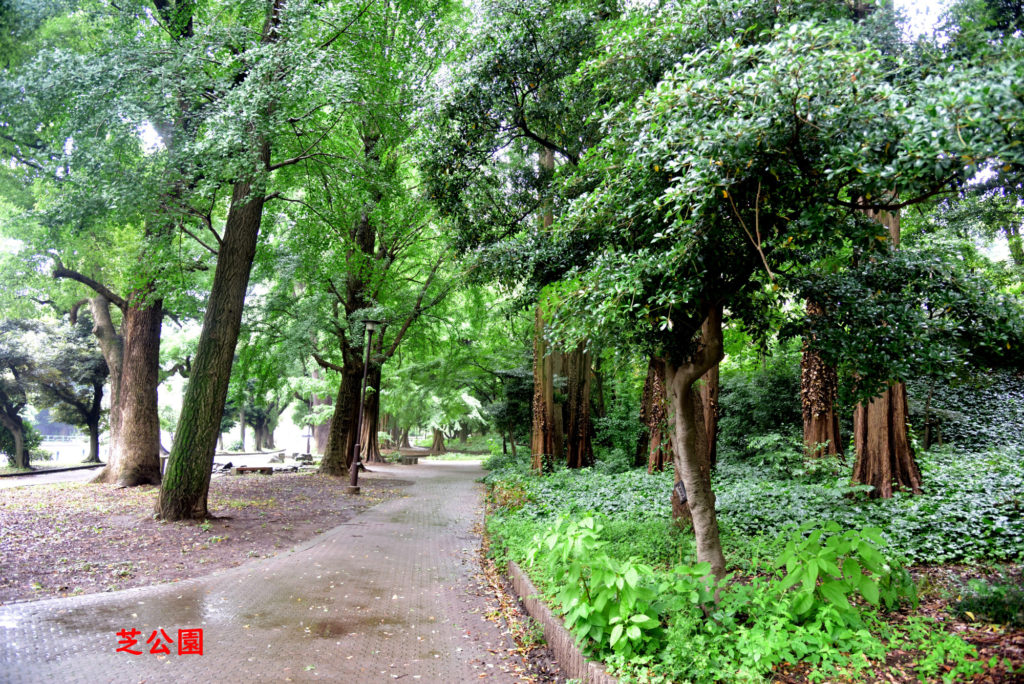 東京プリンスホテル裏手の芝公園 雨に濡れた緑がきれいです