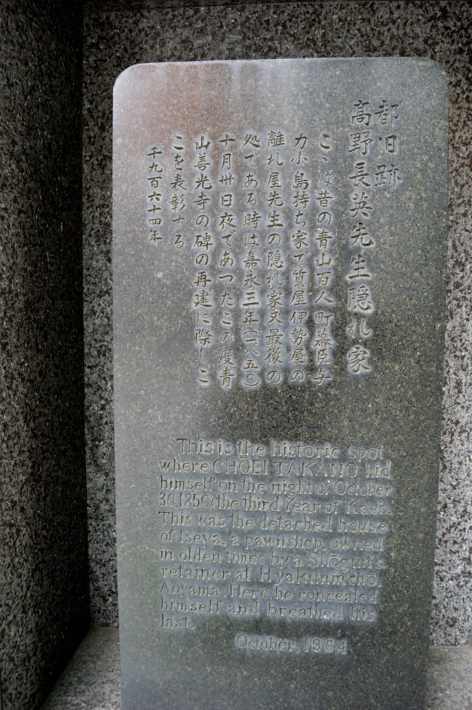 更に渋谷方面に向かうとスパイラルビル その足元にこの様な碑 江戸時代後期の蘭学者 高野長英の隠れ家