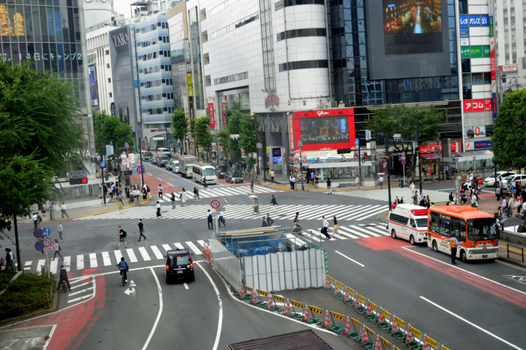 澁谷は大改造中 ここには渋谷東横店があったが今はなくJR 澁谷駅が見えるようになってる 奥の高層ビルは澁谷マークシテイ―