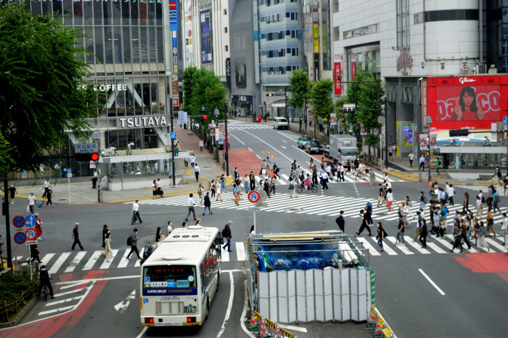JRのガード下をくぐると テレビで必ず放映される澁谷スカランブル交差点 コロナ 午前中と言うことを差し引いてもあまりにも人が少ない 観光客がいない 繁華街の打撃が半端じゃない