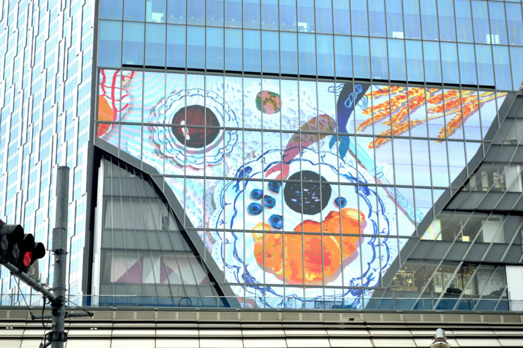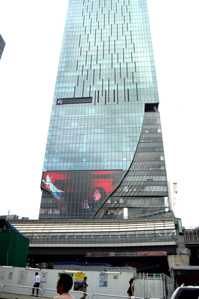 澁谷スクランブルスクエアーには巨大な動画の広告 その下は新しく移設された銀座線 渋谷駅