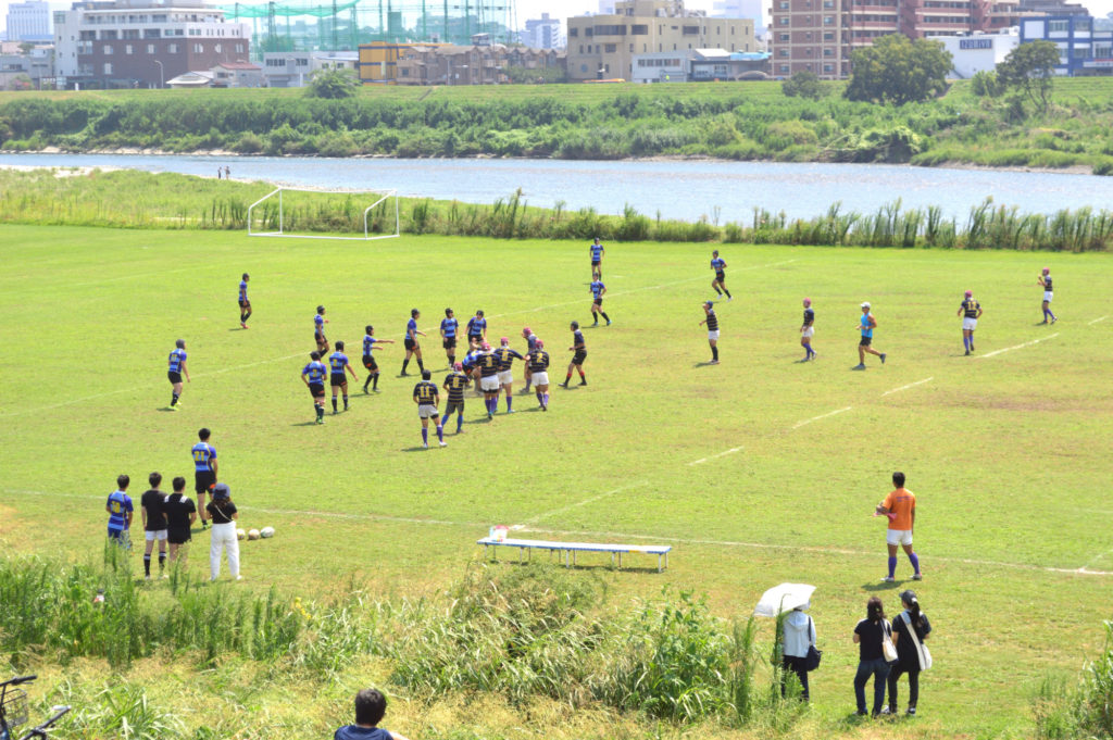 河川敷きで高校生のラクビーが 熱中症が心配だ