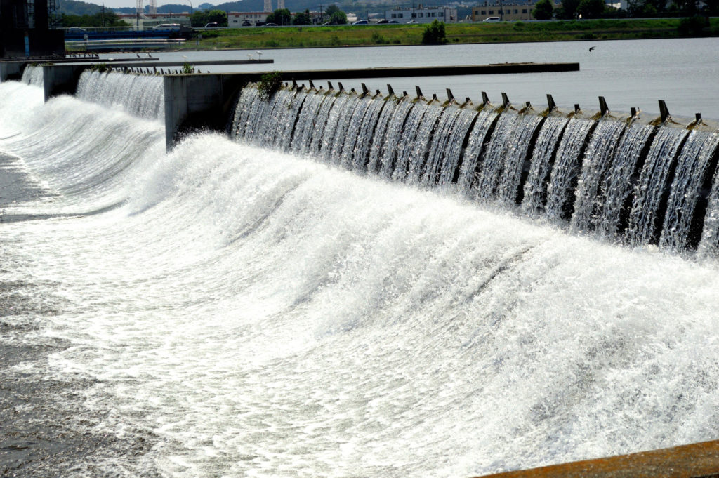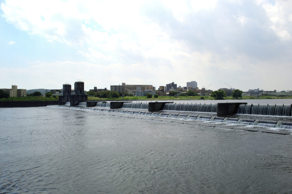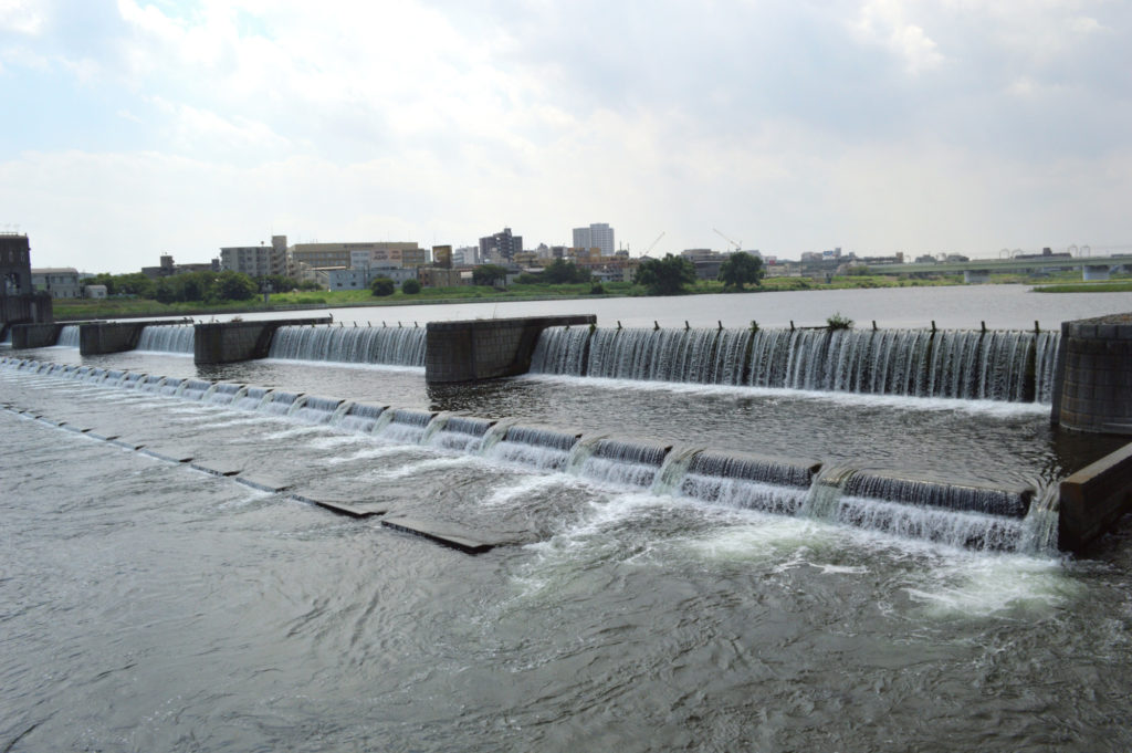 - 多摩川の水を堰止め、二ヶ領用水に導いています。昭和20(1945)年にコンクリート堰となり、昭和46(1971)年と平成24(2012)年に改築されました