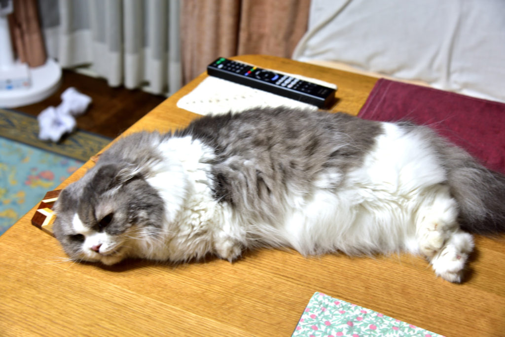 我が家のアイドル この頃は我々夫婦が食事を始めると当然のごとくテーブルの上に