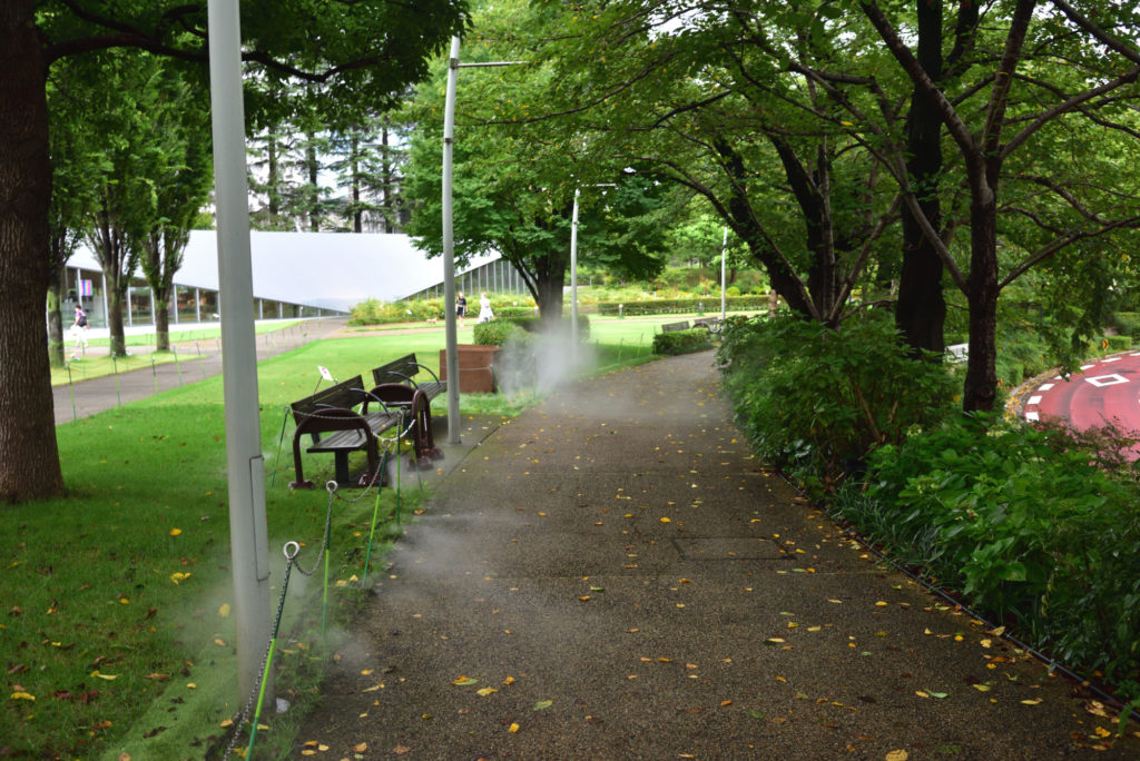 8/13-9/22迄東京ミットタウンで光と霧の散歩道 9/12に行ってきた 夜は青色のライトアップをするのだが