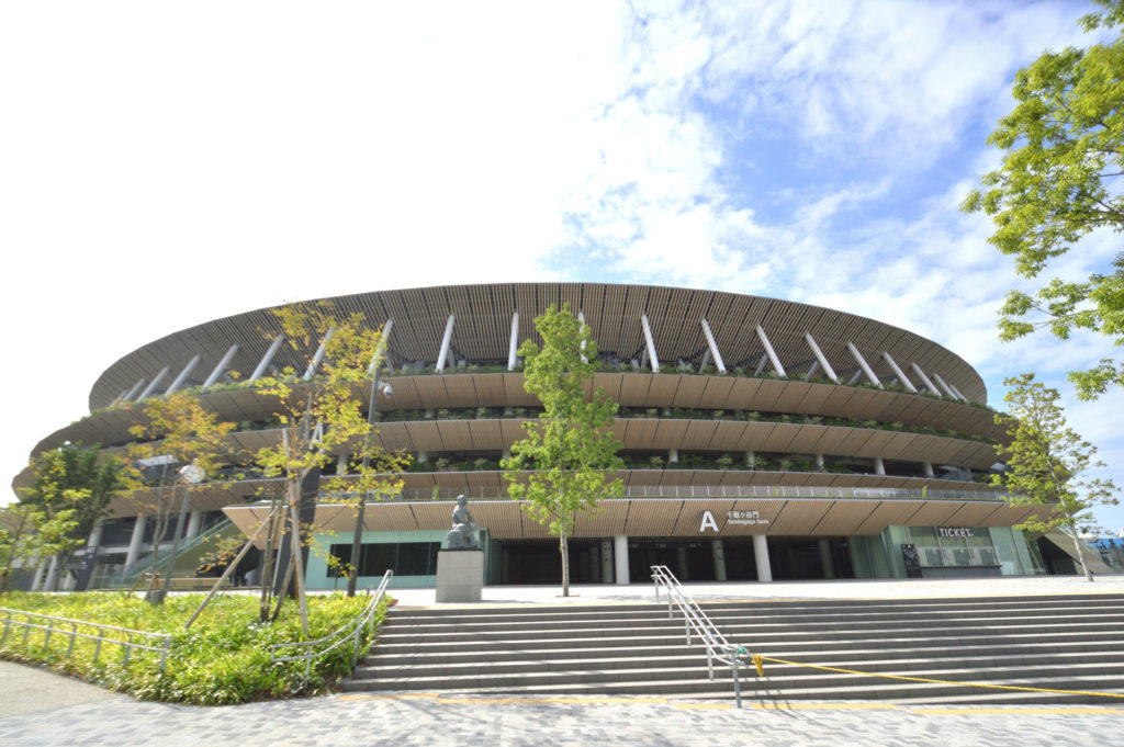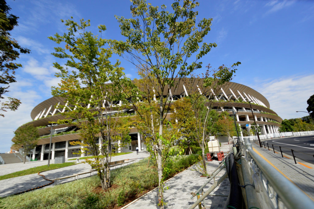 新国立競技場 周囲は相変わらず塀で囲ってるが カメラ広角で写せた 人がいない競技場はなかなか移すことができない 千駄ヶ谷門から