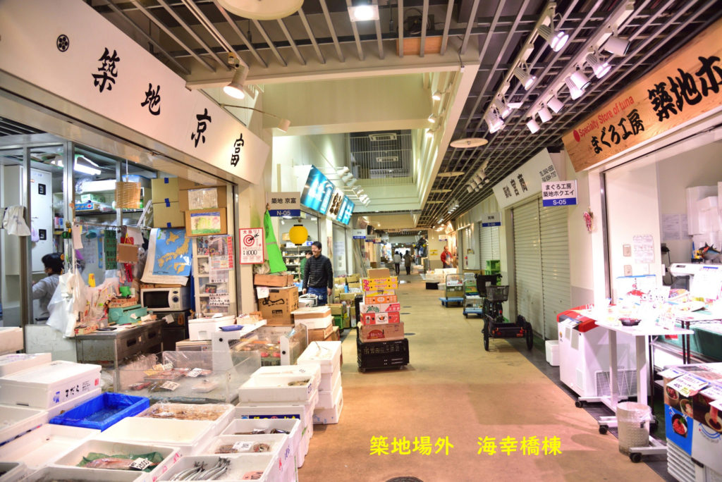 築地場内が豊洲に移転 場内の仲卸業者が場外に残る為に出来た小田原棟 海幸橋棟