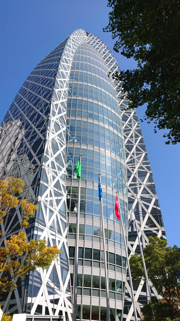 神宮外苑から代々木方面 正面アンテナが入るNTTドコモ代々木ビル