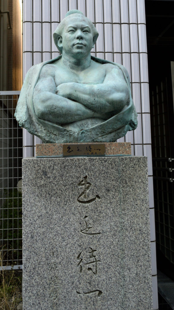 九重部屋入口に昭和の大横綱 千代の富士 出身地 北海道福島 道の駅にも銅像あり