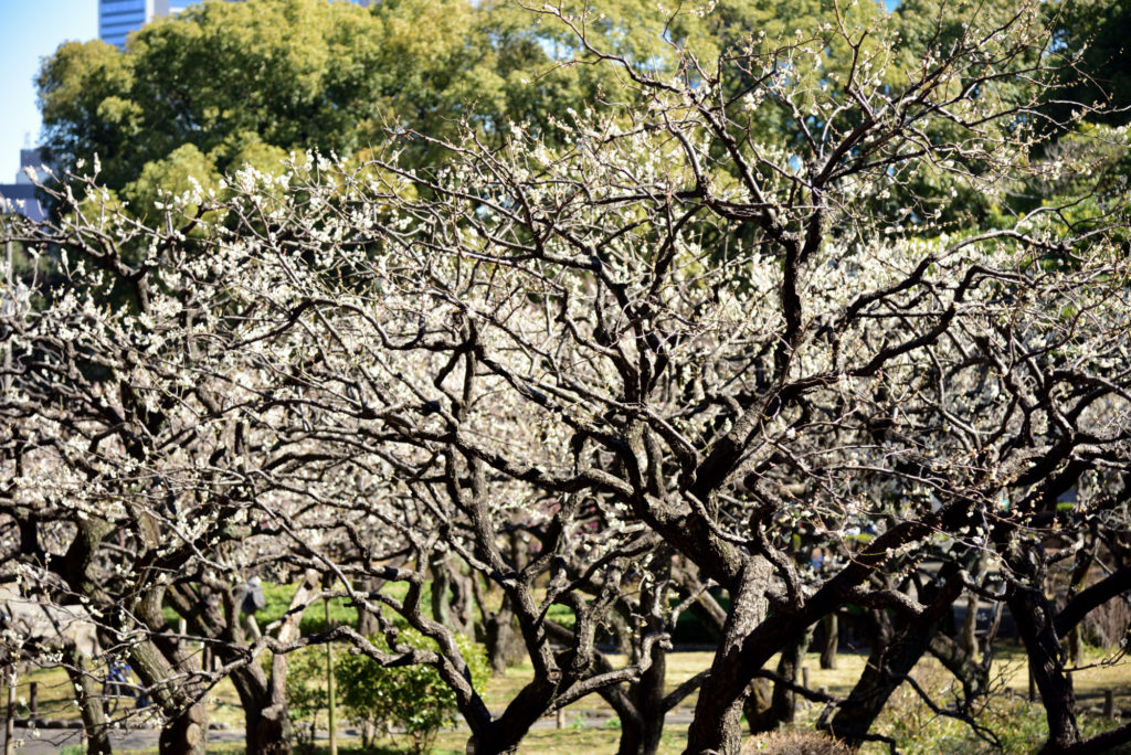 港区東照宮横にある 銀世界の梅 約70本ある 今日から梅園祭り開催だがコロナで中止 本来長椅子の上に赤い毛氈をひいてお茶会が開催される 梅の名前が色々あることを再確認 新宿角筈にあった梅屋敷銀世界がここに写され銀世界の梅と呼ばれてる 選定されてる 品所の名前が優雅 出典はわからないが
