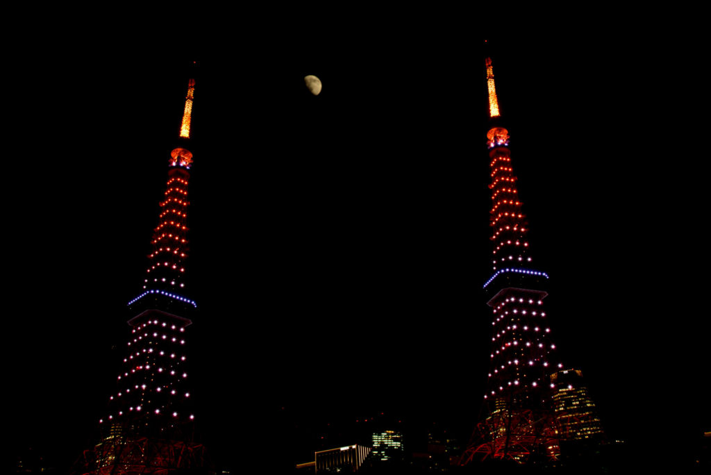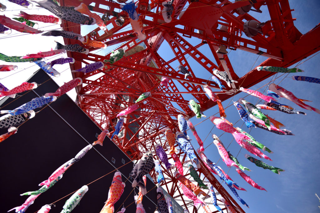 東京タワーの高さ333mにちなんで、なんと333匹!カラフルな鯉たちが風になびかれ、いっせいに空を泳ぐ姿を見ることができます 今日は快晴 湿度も低い 昼間11時頃と夜間は19;00過ぎ 何時もの場所で