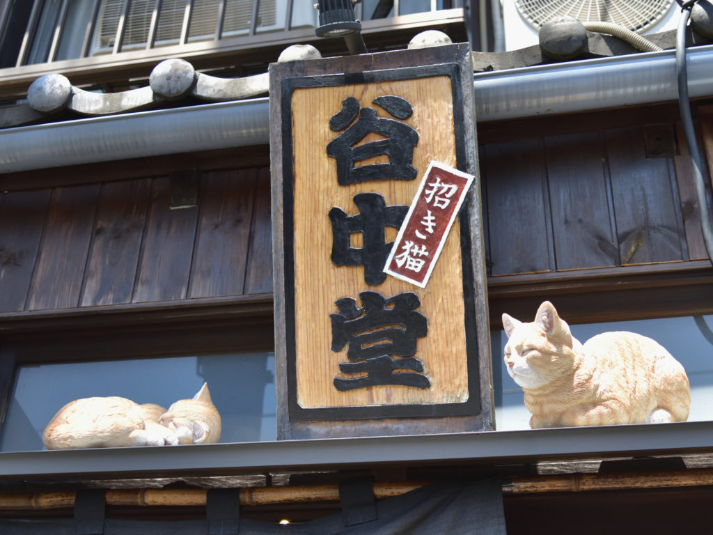 さくら通りを抜け三崎坂を下り団子坂に向かう途中屋根に三毛猫 近くで見たら彫り物