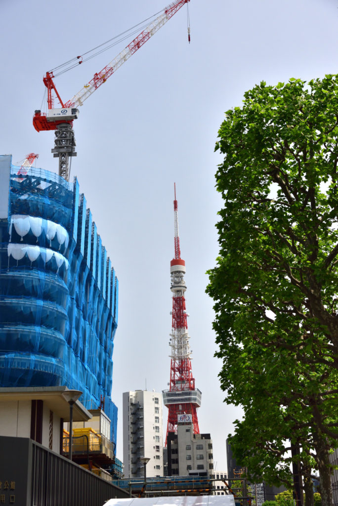 東京タワー 外務省外交史料館前から 工事中の建物は昔郵便局があった所を再開発 64Fの高層ビルができる 道路を挟んでロシア大使館がある