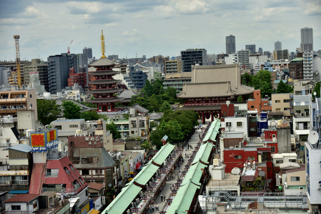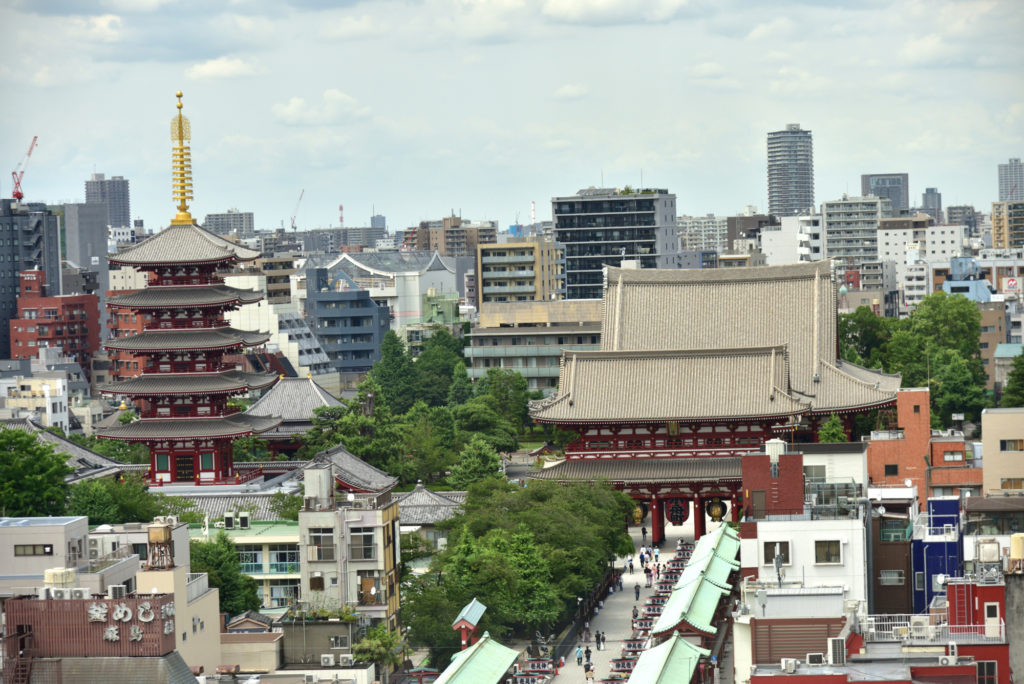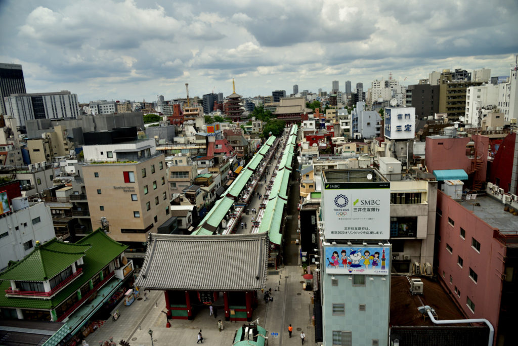 不忍池から谷中を回り 親父のお墓参りをして浅草に戻り雷門前にある台東区の観光協会がある8Fが展望台になってるので行ってみた 雷門 仲見世商店街 浅草寺 伝法院の五重塔