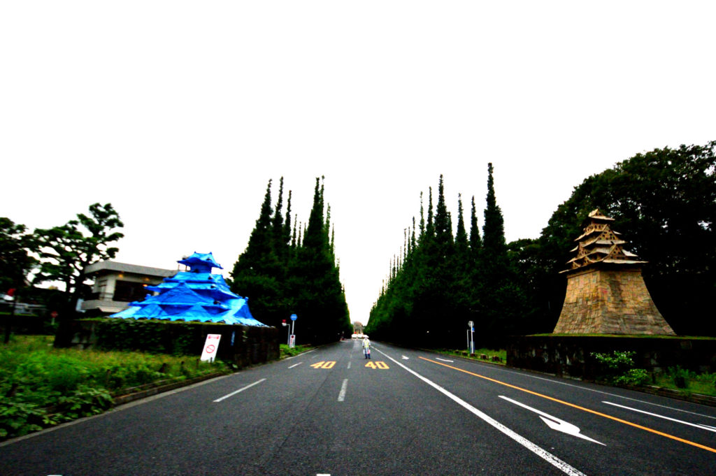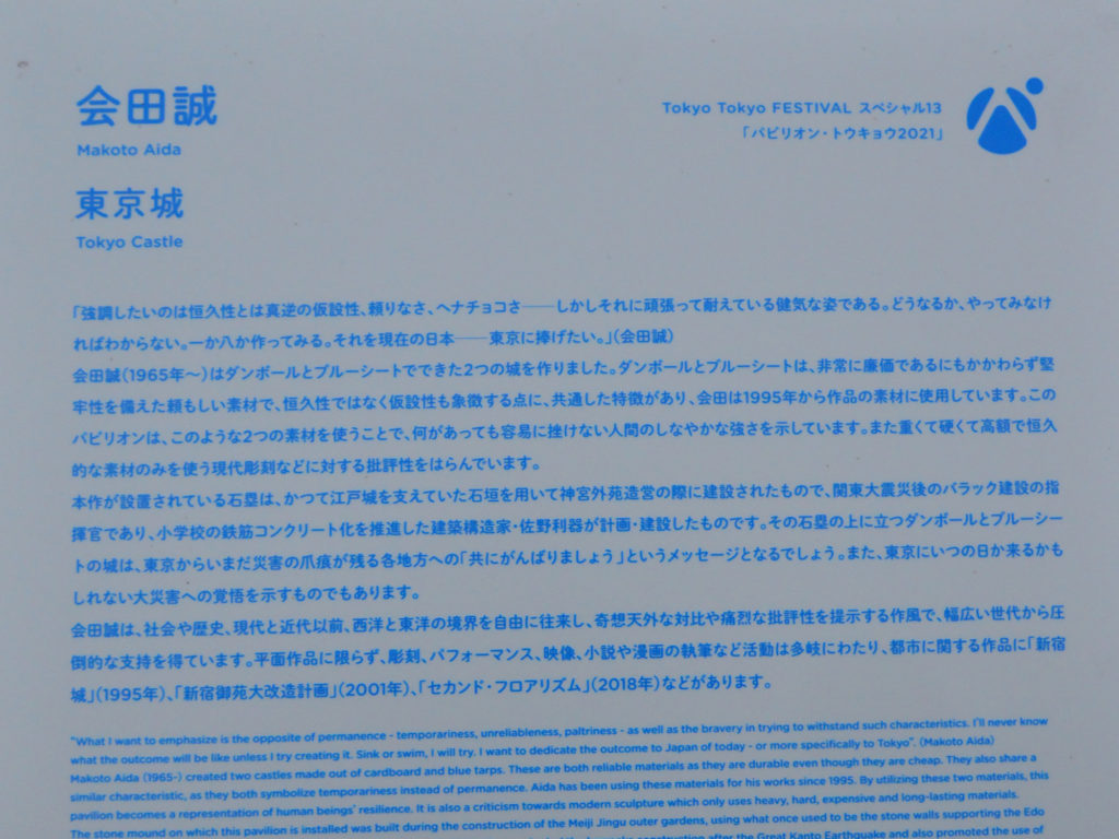 苑前の銀杏並木の入り口に、会田誠による東京城が設営されている。五輪に因んだパビリオン・トウキョウの一環である