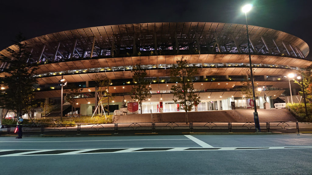 東京オリンピック5日目 相変わらず家で じっとしてるのはNG ため息がでる 天気は良いので11:30頃家を出る 最近のコース 信濃町から新国立競技場 外観を遮ってた柵が千駄ヶ谷口は取り払われてるので