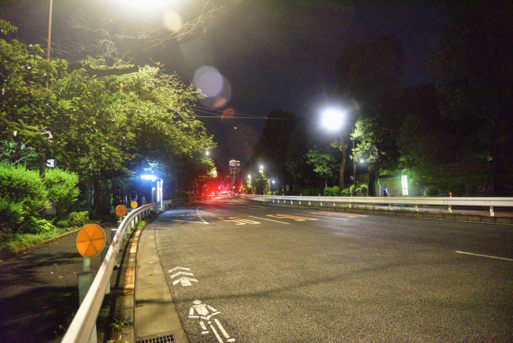 21時ごろ大京町と内藤町を通る外苑西通り 花火が上がった