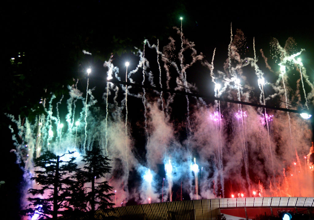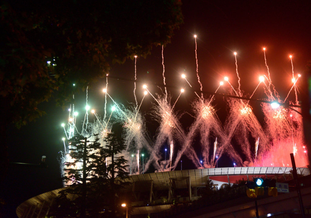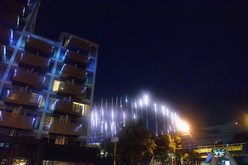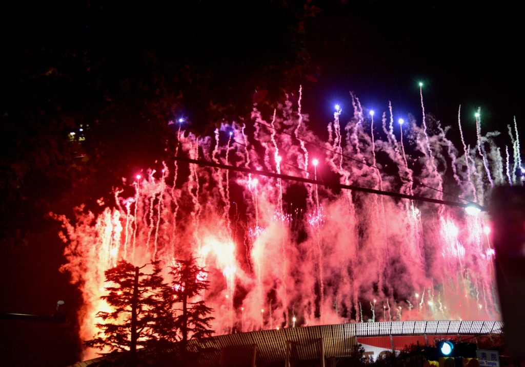 22時15分過ぎ東京オリンピック終了の花火が上がり始めた