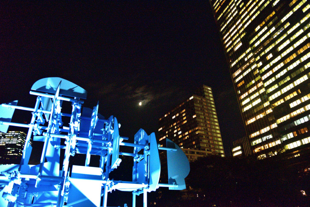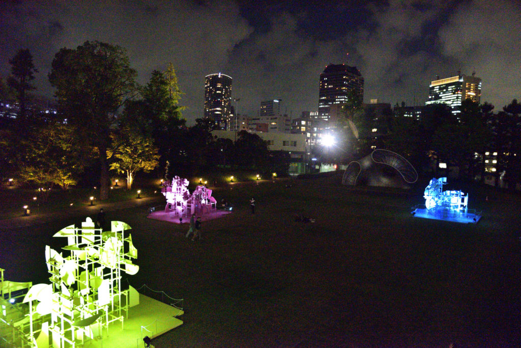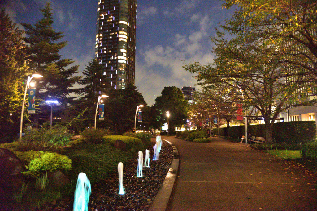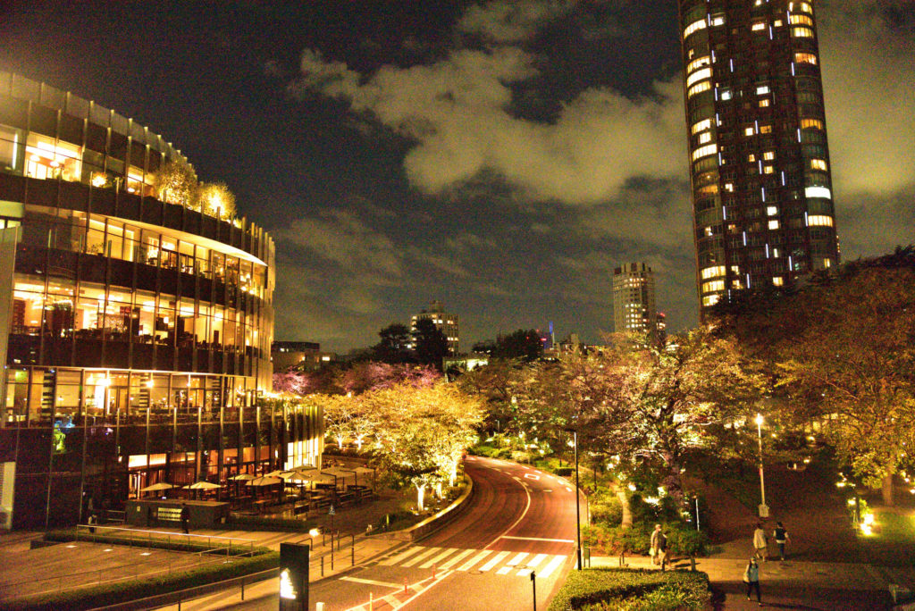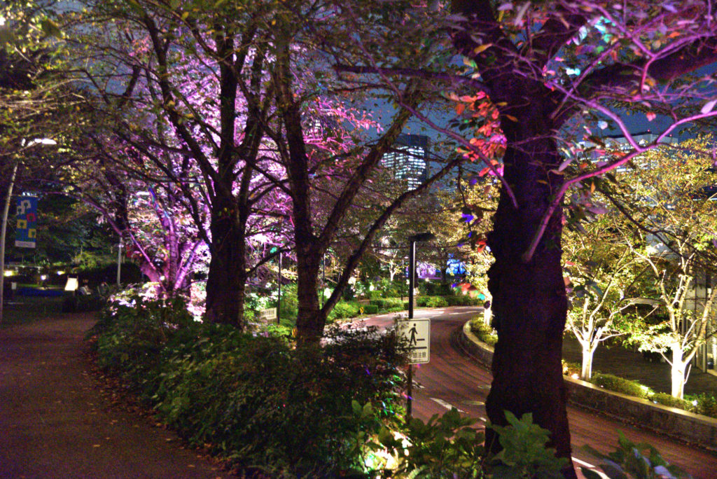 前日東京ミットタウンに用があり窓の外 庭に3ヶライトアップしたものが見えた 天気も良いのでぶらぶらと