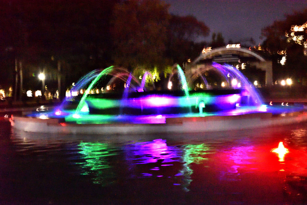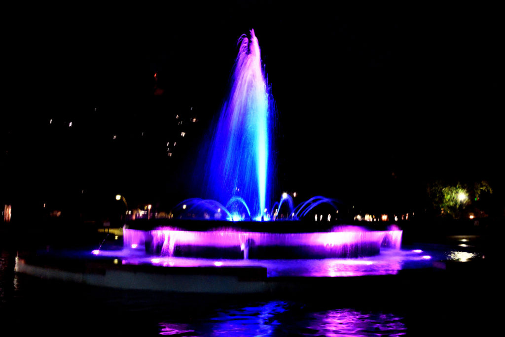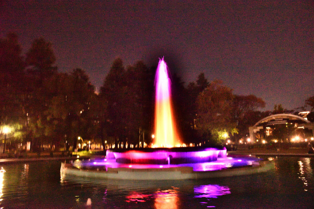 時間で色も噴水も変化