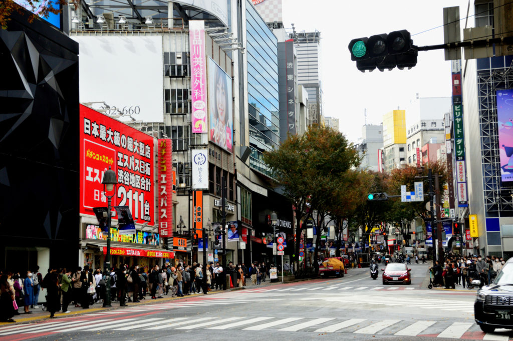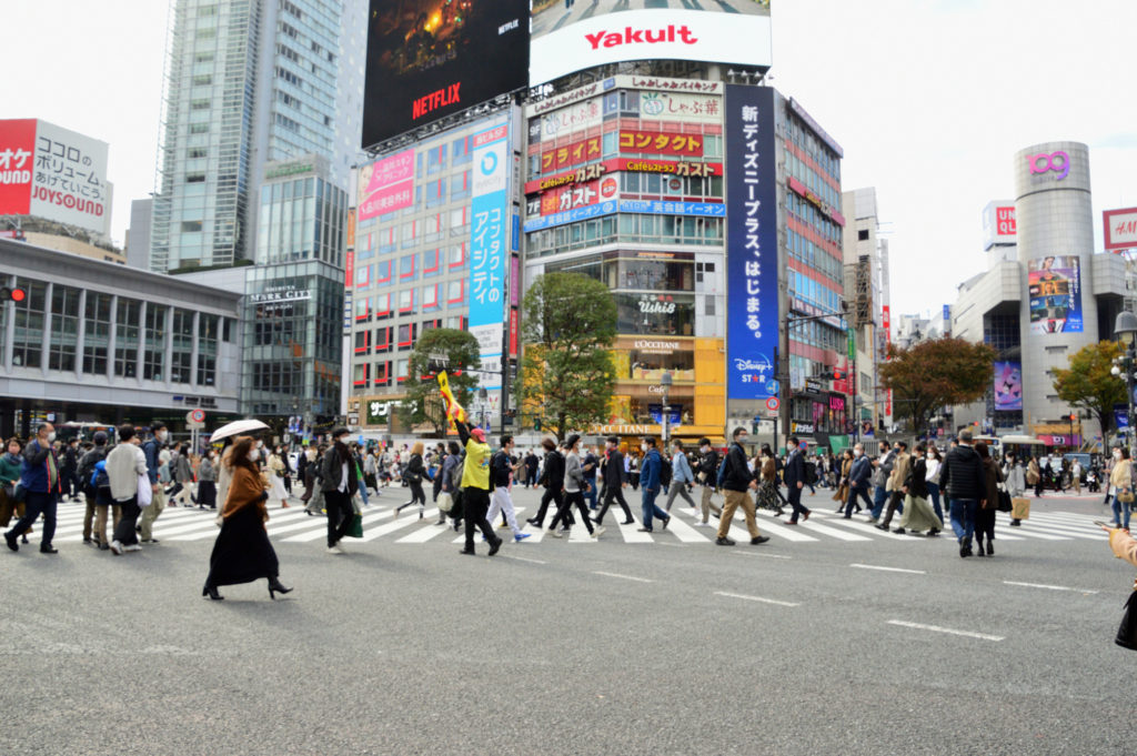 渋谷スクランブル交差点 上からとるともっと全体が寫せるのだが