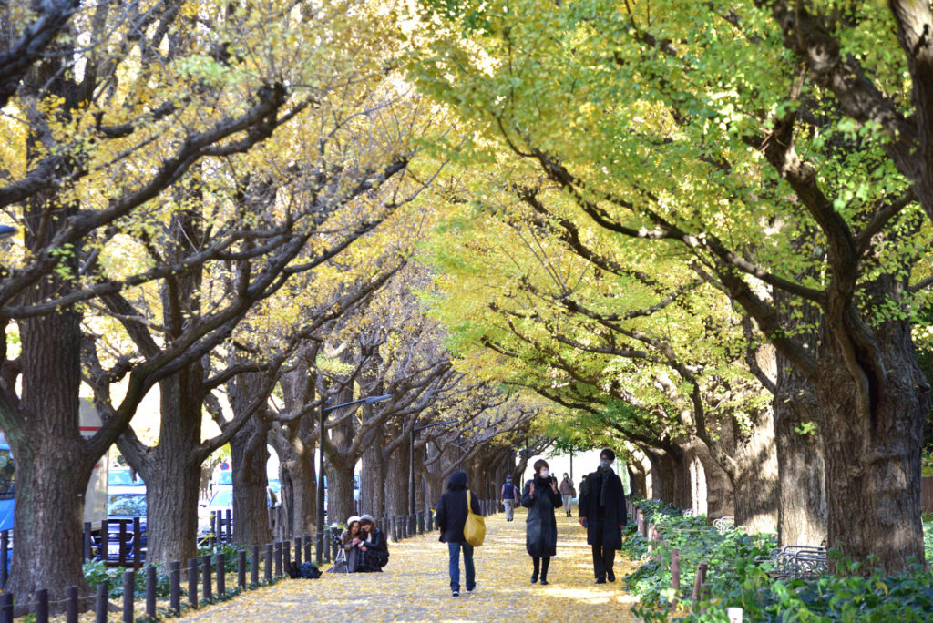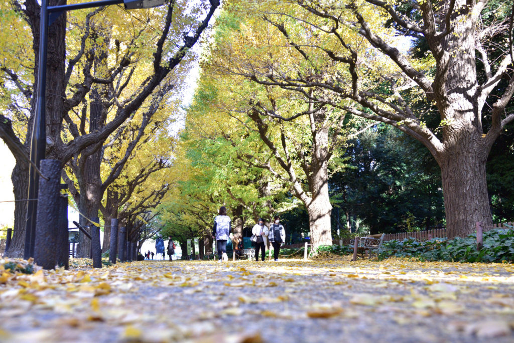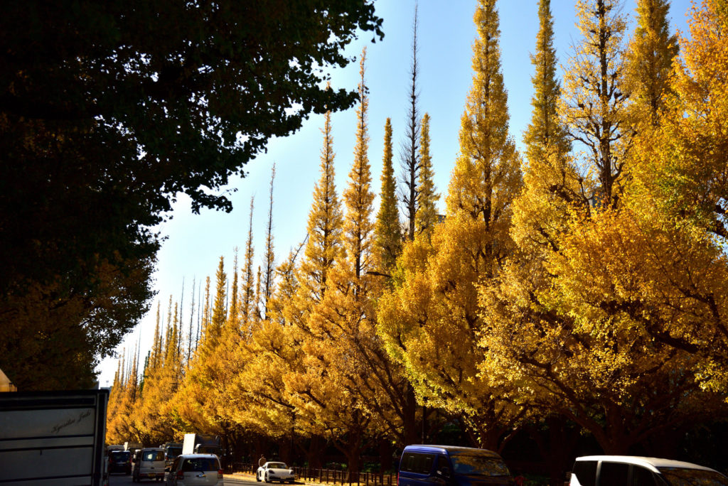 9時頃の銀杏並木 外側の銀杏は大分葉が落ちてきた