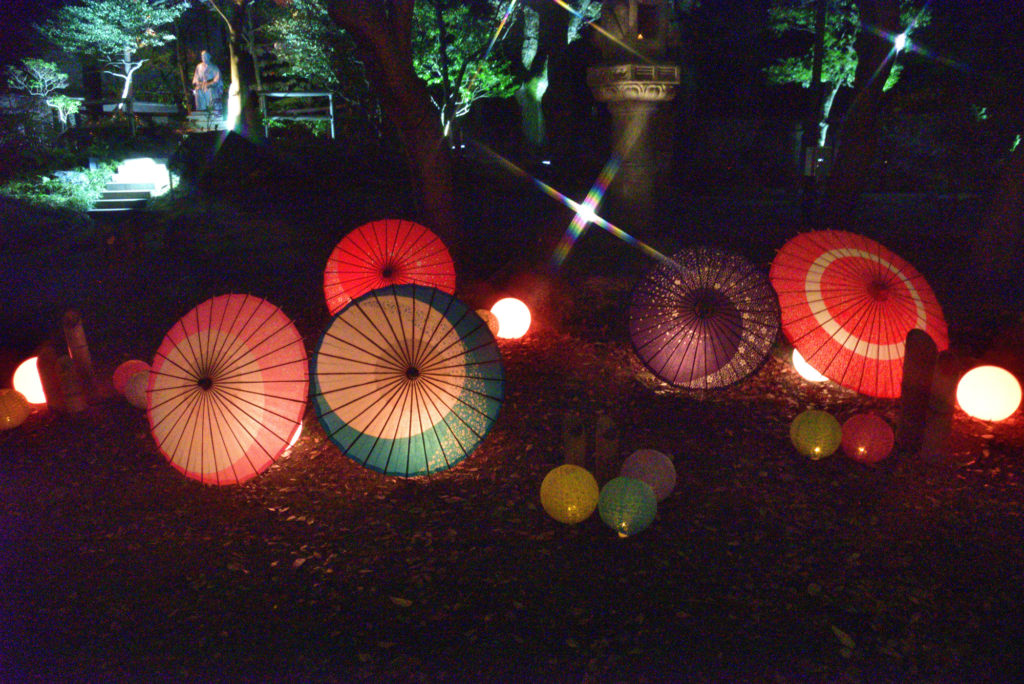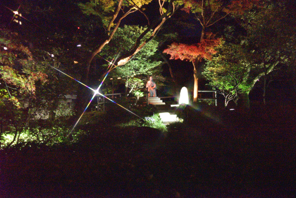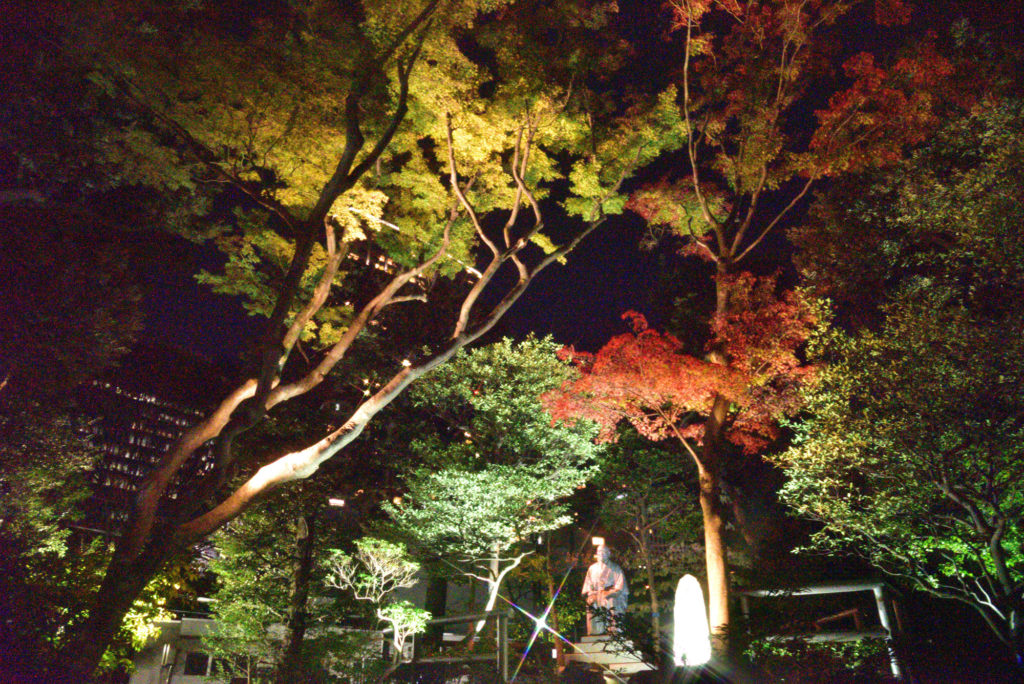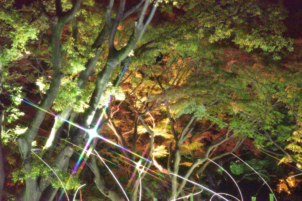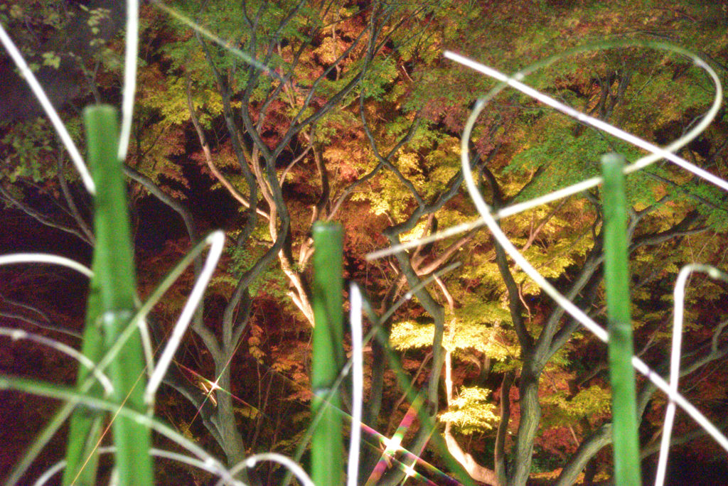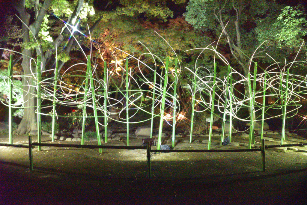 今年も11/24-27迄 高橋是清公園のライトアップが始まる いけばな 草月流の協力で 園内には草月流の作品も展示される 今年は 竹