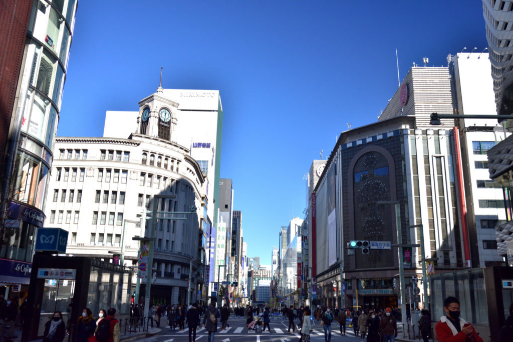 いったん帰宅 上野に年末の買い物 チャリで再度 銀座4丁目交差点から 歩行者天国 服部時計店の時計が11時30分を指してる