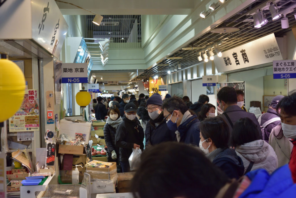 早朝06:30 築地場外に年末の買い物 観光客は少ないがやはり年末 買い物客が多い
