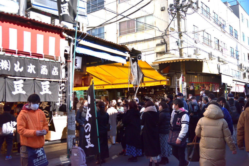 築地場外 12時前 忘れた買い物を購入 早朝に比べ人が多い