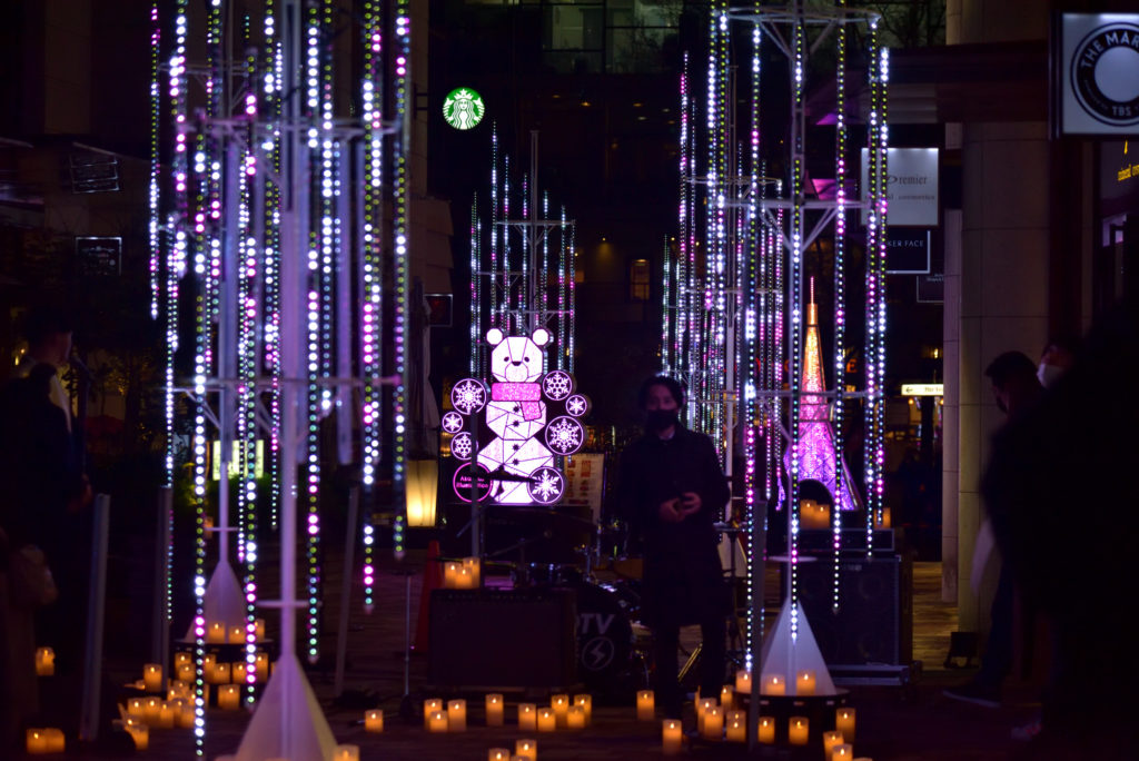 今年のイルミネーションデザインも、例年に引き続き、赤坂サカスの顔であるTBSテレビの音楽番組等を手掛ける美術チームが担当。仲通りのイルミネーションには、約1670万色もの光が表現可能なLED「バーティカルチューブ」を採用し、無限な可能性を秘めた様々な色合いで、赤坂サカスの世界観を演出。