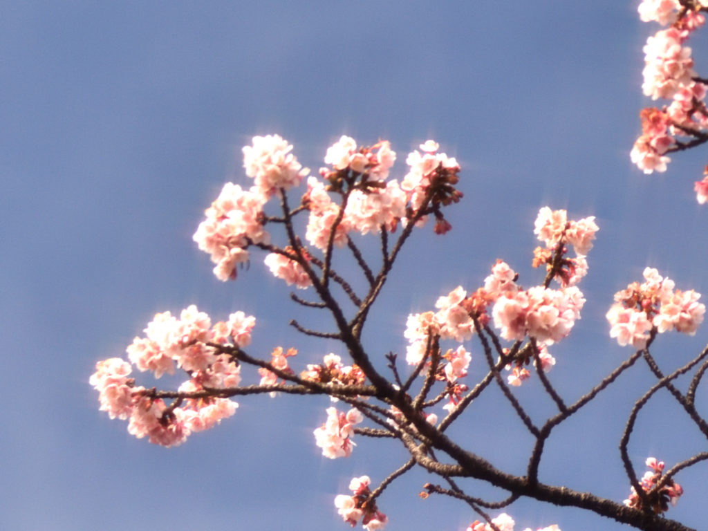 上野恩賜公園のメイン通路 両側は春になると花見のメッカ 両側に桜 3月中旬が待ち遠しいが この中に1本 カンザクラが満開に近い状態で咲いてる