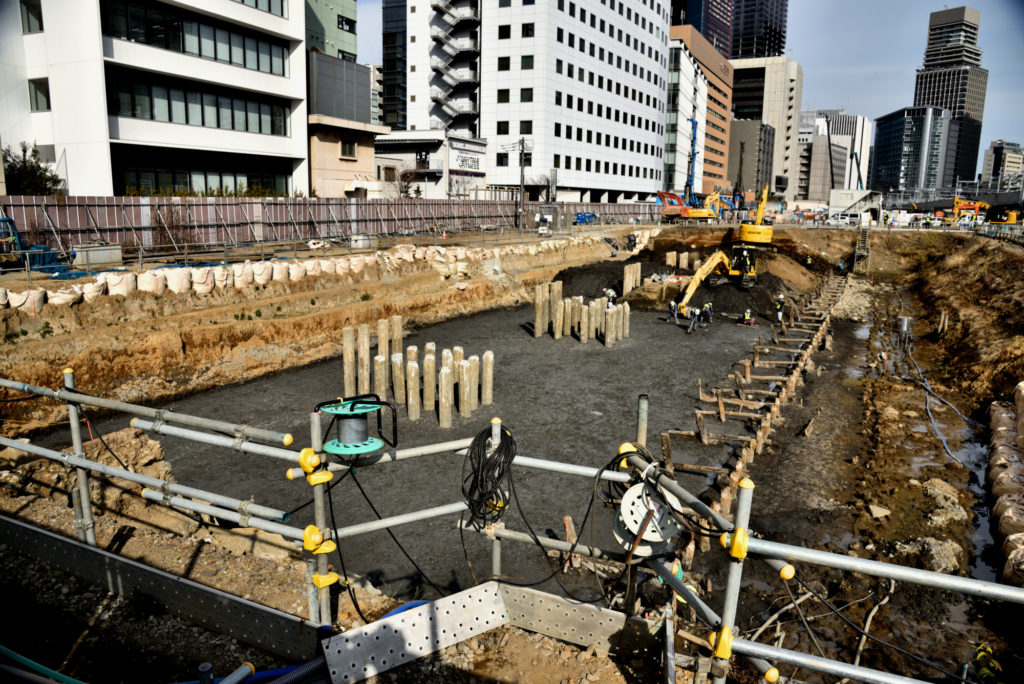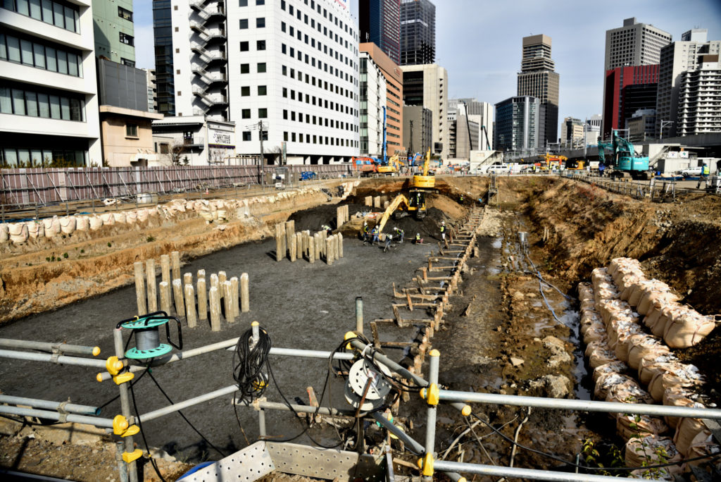 JR 山手線 品川ー田町の間に新駅誕生 泉岳寺に近いところに新駅高輪ゲートウエイ駅誕生 この工事再開時に見つかった明治鉄道遺構 高輪遺構 現在史跡指定され整備中