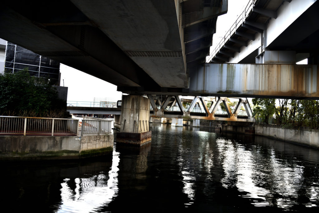 品川から田町迄海岸通りにわたるには高輪大木戸跡から右折 高輪遺構を左手に進むと通称 お化けトンネル 昔は車も通れたが今は人間様のみ 天井が低くここを渡ると芝浦方面に 港区海岸方面は運河が ここは芝浦運河 両側は整備され散歩道